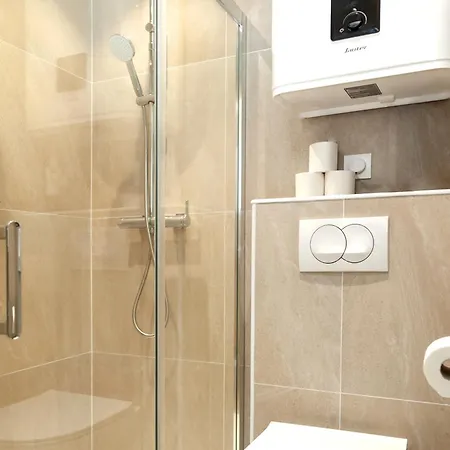 Per una maggiore comodità, quest'appartamento dispone di un bagno con WC separato e una doccia. Inoltre, ci sono asciugacapelli e asciugamani.